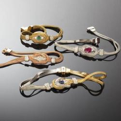 In this unique ensemble of a necklace, earrings and a ring, the power of nature is merged with the experienced design artistry and unrivalled gold smithing (...)