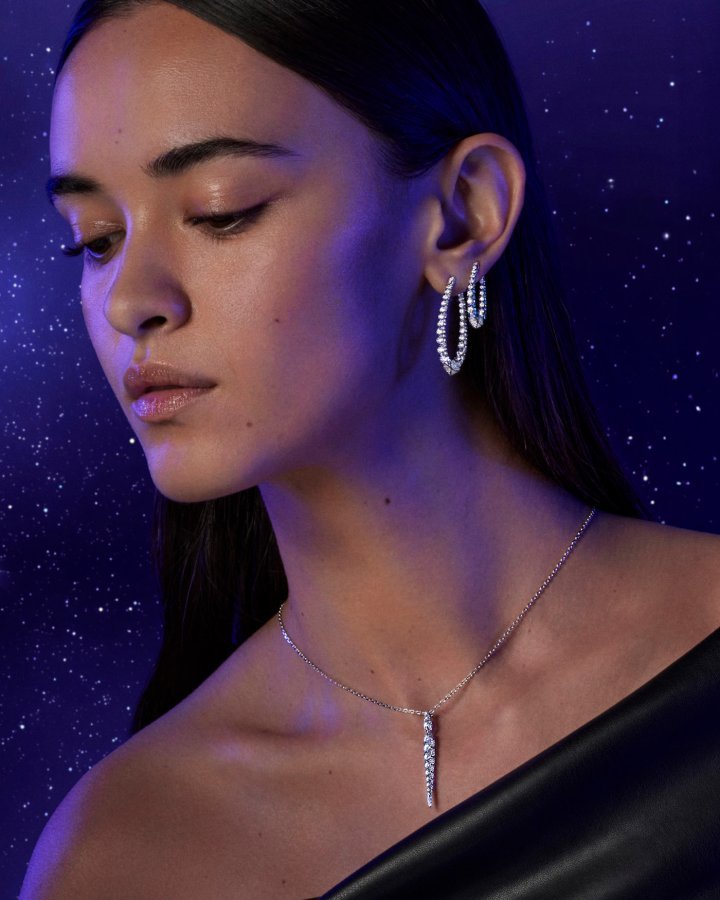 Inspired by the rare halos that encircle the sun and moon, the Merveilles collection first introduced the Halo line, reflecting luminous arcs of light found in nature. The story evolves with the Merveilles Blue line, a limited-edition that unites the brilliance of diamonds with the serene depth of sapphires. Interlocking diamonds and sapphires of varying sizes form a seamless harmony of light and colour, capturing the celestial beauty that defines the collection.